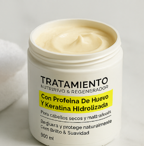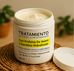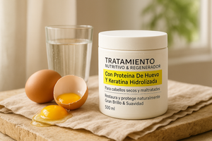 “Revitaliza tu cabello desde la raíz con proteína de huevo hidrolizada. Fortalece, hidrata y crea un escudo protector contra los daños invisibles que debilitan tu cabello.”